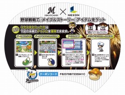 8月15日に行われる、千葉ロッテマリーンズVS東北楽天ゴールデンイーグルス戦にて、『メイプルストーリー』のゲーム内で入手できるアイテムのクーポンが印字された特製うちわを無料で15000枚配布致します。